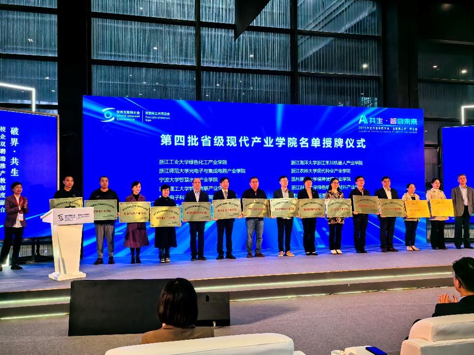 11月6日,浙江省经信厅、教育厅联合举办的2025年产教融合暨校企双聘推进会在浙江乌镇开幕。会上,绿色纸基新材料省级重点支持现代产业学院院长沙力争教授代表学院获授牌,标志着小黄书