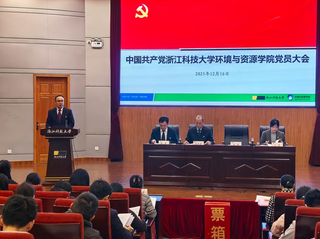 党员大会在小和山校区图西报告厅隆重召开。学校党委组织部副部长周晓夏到会指导。学院党委书记李俊代表上一届党委作工作报告。环资学院院长沙力争、副院长张进出席会议。大会由学院党委副书记王群同志主持。